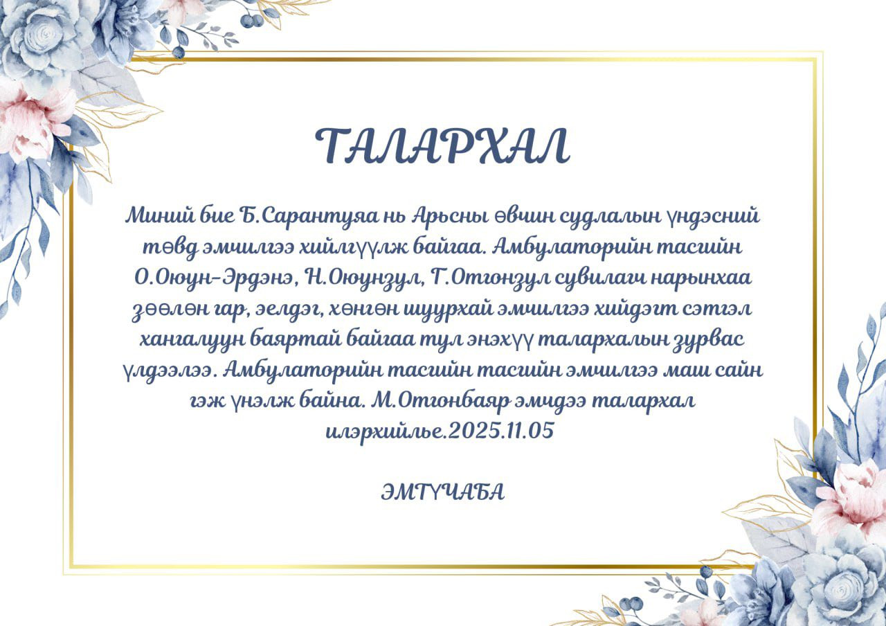 ЭГЗНС тасаг нь их эмч-4, сувилагч-5, туслан дэмжих ажилтан-1
